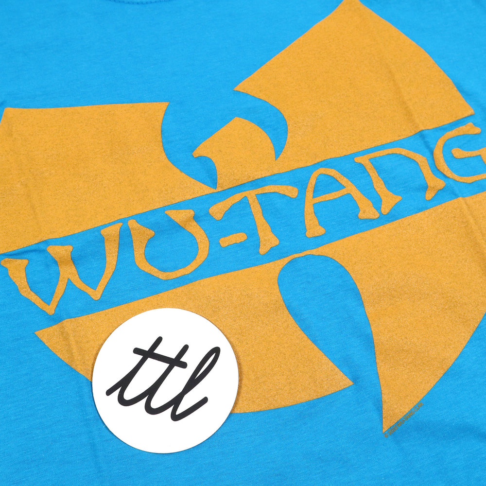 THE classic Wu logo shirt! RZA, GZA, Ol' Dirty Bastard, Inspektah Deck, Raekwon the Chef, U-God, Ghostface Killah, & Meth. The Wu had it all including one of the illest logos of all-time. Here it is in it's original form on the lesser-seen blue shirt with distressed treatment to make it look like you've had it for years (since you probably had one of these in high school). 100% cotton, standard fit.